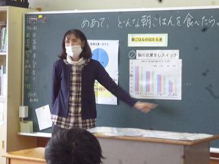 鹿沼市粟野地区学校給食共同調理場の松島先生をお呼びして、5・6年生に食育指導をしていただきました。今日のめあては「どんな朝ごはんを食べたら良いか考えよう」でした。