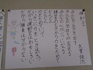 今年最後の記事として5・6年生の廊下に掲示されていた運動会を題材にした詩をご紹介します。小学校生活最後の運動会を最高のものにしようとしていた6年生の気持ちが見事に表現されています。