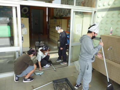 卒業の日まで残り少ない6年生が、奉仕作業で昇降口や門扉のレールにたまった砂をかき出したり、廊下や階段の汚れを拭きとったりしてくれました。5年生も手伝いとして参加してくれました。普段の掃除ではなかなか手を付けることができない部分がとてもきれいになりました。真剣に清掃活動に取り組む姿から、お世話になった学び舎に対する感謝の気持ちが伝わってきました。