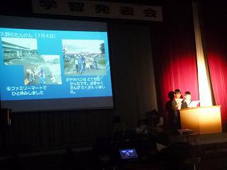 1・2年生は町探検で見て、聞いて、体験したことを発表します。