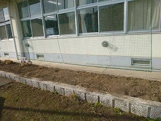 琉球あさがおは螺旋状にからみつくので、外すのが大変。1・2年生がリースの材料にするので、ある程度の長さまでつたを切らずに外しました。ゴーヤやヘチマ、アサガオは短くカットしましたが、ネットに絡まった細かいつたを取り除いくのには手間がかかります。そこで子どもたちの出番です。始まるとあっと言う間、手早くきれいな状態の網になりました。足下の花壇もきれいになったので、チューリップの球根を植えたいと思います。