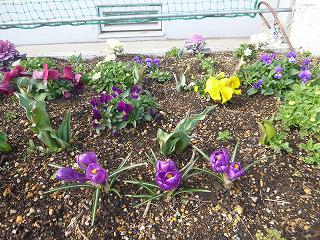 ぽかぽか陽気に誘われて、チュウーリップが咲き始めました。入学式まで待ってほしかったのですが…。