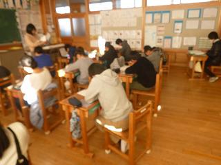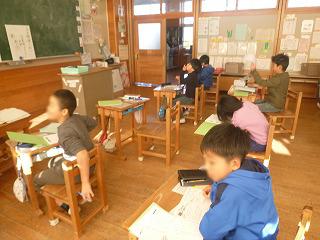 今回も家庭学習カードを1月21日(月)~27日(日)まで配布しますので、ご協力をお願いします。今日は金曜日なのでチャレンジ学習の日です。廊下に用意された問題を持ってきて、集中して問題をい解いていました。
