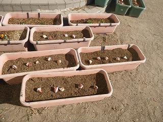 ウサギも仲よく年越し、花壇の花々も小さいながらも校舎に彩りを添えています。