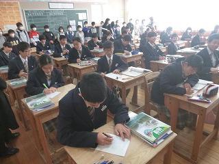 学校長からは今年の干支の話がありました。猪はあまりよく言われませんが「『猪突猛進』の言葉に代表されるように、目指に向かってつき進む年にしてほしい。3学期は短いけれど行事がたくさんあり、進学、進路に向けて準備をする学期です。一日一日を大切に、これまでお世話になった皆さんに感謝の気持ちを表せるようにしましょう」