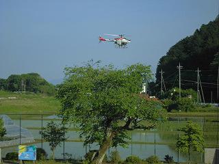 そこで、産業用無人ヘリコプターで防除作業をされる葛西和徳さんにお世話になり、害虫駆除をしてもらいました。