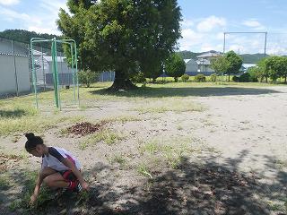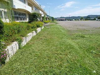 今日の作業は校庭の草むしりと刈り払い機での除草です。炎天下で汗だくになりながらの除草となりましたが、校庭はとてもきれいになりました。お陰様でよい環境で2学期迎えることができます。作業終了後、サッカーの練習試合にきた子が草むしりや落葉の片付けをしている姿に感心しました。