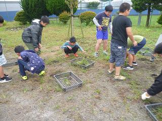 今日はみんなでむしりましたが、なかなか手強い。細かい草のため、むしっても、むしっても減りません。多少残ってしまいましたが、縦割り班ごとに割り当てられたエリアはずいぶんきれいになりました。