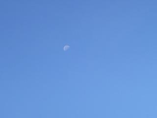 登校してきた子どもたちが見上げた空には半月が見えました。さっそく望遠鏡を設置して月を観察しました。レンズ越しに見えた月は表面がぼこぼこして「すご~い」の声。太陽と月の位置によって見える朝の月、思いもよらぬ観察会となりました。