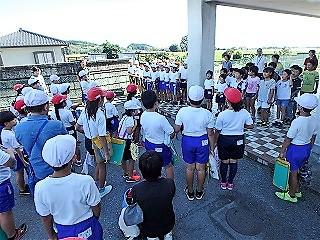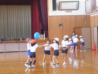 3校時は1年生が国語の学習でことば遊びを、2年生は作文ゲームで文をつくりました。3年生は道徳です。自分たちが住んでいる地球のよさについて考えました。4・5・6年生は「清洲ワンツーオリンピック」と称し、風船やポール、雑巾を使った競技で大いに盛り上がりました。