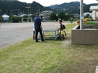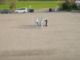 3日は事前準備のため、鹿沼支部青年の会の方たちが測量に来てくれました。高機能の測量機で測ると、凹みが3㎝~5㎝ほどあることがわかりました。16日は川砂利の敷き均しを子どもたちの手作業で行い、重機での整地作業を見学します。重機への搭乗体験もできるかもしれません。当日は鹿沼支部青年の会員さんや栃木県鹿沼土木事務所の方、報道関係者など、15~6名の方々が来校される予定です。どうぞ、よろしくお願いします。