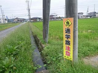 今年の4月から朝の交通量が増え、渋滞を回避する車が通学路を通るようになりました。道幅が狭いので子どもたちとすれ違う時にはらはらします。そのため、駐在所の巡査さんがパトカーで見回りをしたり、地元の方が運転手に徐行するよう声をかけてくれたりしました。学校でも実態を調べ、鹿沼市教育委員会へ危険箇所として要望をだしているところです。