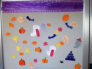 図書室にはハロウインの飾りと一緒に7冊の絵本が並びました。「図書委員会集会でクイズを出すので、読んで下さい。」とのメッセージ付きです。