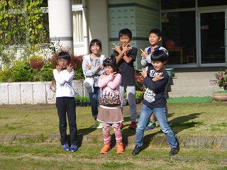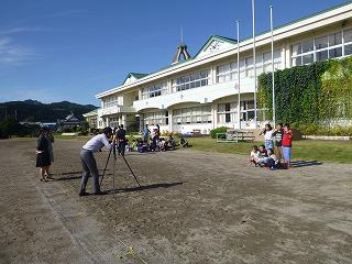 秋晴れの下、卒業アルバムの写真撮影がありました。