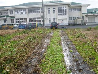 5校時に芋掘りをやりました。午前中に雨がぱらつきましたが、午後は作業日和となりました。夏の間、草に負けていた芋畑もここにきて芋づるに勢いが。つる切りとマルチをはがした後に、子どもたちが作業に入りました。6年生が芋を傷つけないようつるの周辺をスコップで掘り起こすとさつま芋を発見、「あった~!」手作業で掘ること数分「大きい~!」の歓声があちこちで上がり、収穫の楽しさを味わっていました。