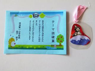 人権集会の後に、清一小読書月間で取り組んでいた「テーマ読破賞」の受賞者が図書委員長から発表されました。学年のテーマの本を期間中に10冊読破した子に与えられる賞です。今年はなんと25名、75%の子が賞状と副賞の手作りのしおりを手にしました。たくさんの子が読書に親しむことができたことをうれしく思います。