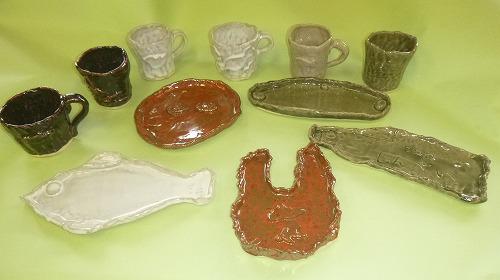 「益子の作品はまだですか。」と、何度も質問されてきた、あの作品ができあがってきました。思いを込めて工夫して作られたお皿やコップ。とても素敵な作品に仕上がっていました。