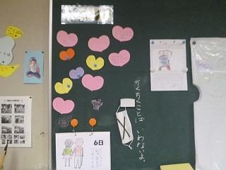 教室に掲示された「ふわふわの木」は友だちの良いところを書いて貼りました。これからもふわふわ言葉がいっぱいの毎日を過ごしてほしいです。