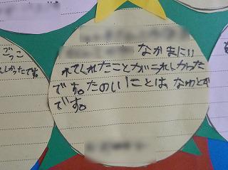 最後に、自分たちで心を込めて折った金と銀メダルを首にかけてあげました。年長さんの子たちが喜んでくれたので1・2年生も嬉しそうでした。今日はたくさん遊んで楽しい時間を過ごすことができました。清洲保育園の園長先生をはじめ、関係の先生方には大変お世話になりました。