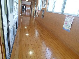 その後は5・6年生の出番です。塗りむらがないように、ツヤ加減を見ながら塗り重ねました。その後の仕事も一苦労、モップについたワックスを洗い流します。白い水が出なくなるま洗い続けました。今日も子どもたちの仕事ぶりは◎です。