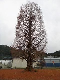 今年の冬は寒暖差が激しく、体調管理が難しいです。樹木も葉を落としていいものか迷っているかのようです。本校のシンボルの樹、メタセコイアは18日(火)の今日、ほとんどの葉が落ちたようです。