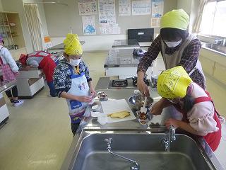 5・6年生は家庭科でジャガイモの皮むきに挑戦しました。まな板の上の野菜は切ったことはあっても、手に持った野菜の皮をむくのは初めてという子がほとんどです。それでも、だんだん慣れてきて調子よくむけるようになった子も。むいたジャガイモは、茹でて粉ふきいもにしました。お行儀は悪いけど、鍋から直接楊子で味見。ハフハフしながら、できたて粉ふきいもを食べました。Simple is the best!ご家庭でもぜひ、ジャガイモの皮むき練習につきあってあげて下さい。そして、できたて粉ふきいもをお子さんと一緒にハフハフして下さい。
