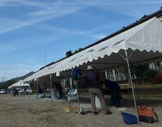 テントの設営、校庭回りの草刈り、花壇の整理等をしていただきました。