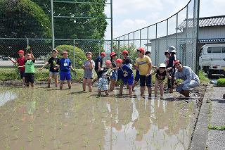 次に田んぼに入って実際に田植えです。最初はバランスを崩して倒れそうになっていた子ども達も、慣れてくると手つきもよくきれいに植えることができるようになり頼もしく思いました。