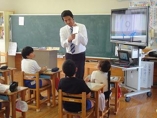 授業は、英語の発音に合わせて、パソコンと大型テレビを使い、リズミカルで楽しく分かりやすく行っていました。