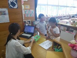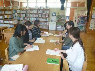 図書室内の掲示コーナーの整備や新しく購入した本のカバー掛け、1・2年生を対象とした放課後の読み聞かせ、児童会図書委員が行う本の修理の指導などをしていただくことになりました。