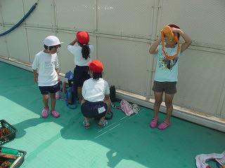 はじめはこわがっていた1年生も徐々に水に慣れ、自由時間にはうれしそうに水遊びをしていました。