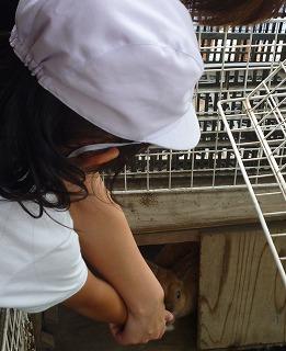 今まで、小屋の外からえさをあげたことはある子供達も、うさぎ小屋に入るのは初めて。