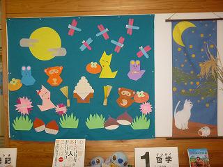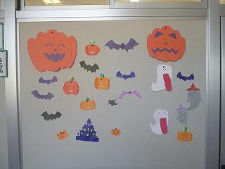 職員室廊下の掲示物はきらきら学級の子が飾ってくれます。左は9月、右は10月の飾りです。