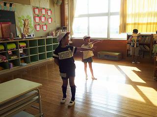 台詞を付け加えたり、電車役を加えたりと、工夫して劇化できました。