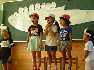 「くじらぐも」を劇にすることを目標にして学習してきた1年生。