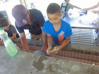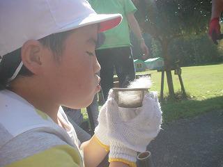 火起こしでは、なかなか火がつかず、あせる子ども達でしたが、諦めることなく何度も挑戦し、やっと火を付けることができました。とっても嬉しそうな顔を見せてくれました。