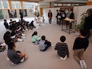 中学生が質問をした後、「小学生も何かありませんか。」と言われて、「アザラシの顔は、どんな道具で作ったのですか?」など質問することができました。