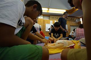 10月10日に、赤ちゃん交流体験を行いました。3年生から6年生までが参加しました。はじめに、「いのちのはなし」をしていただき、次に赤ちゃんの人形を使い、だっこの仕方やおむつ替えを教えていただきました。