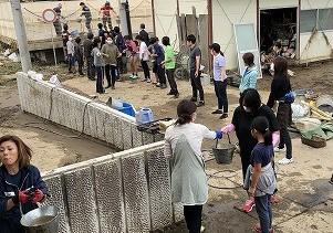 校舎の外の水道は出るようになったのですが、これをバケツに入れて運ぶのにも一苦労でした。