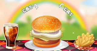 「Tow tomatoes please」「Here you are」何度かやりとりをして、ハンバーガーの完成です。