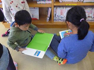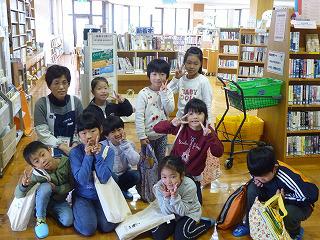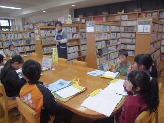 まずは粟野図書館。初めて来館した子もいました。開館日や蔵書数、来館者数、本の借り方など教えていただき、自分の好きな本を借りました。