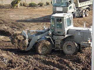 大きな重機を使って、トラック100杯分の泥をポケットパークに運んでくださったのは、京都の大久保駐屯地から来た小隊約30名の隊員。