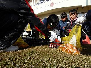 12月1日(日)には、児童、保護者、中学生、地域の方がたくさん来てくださり球根植えをしました。交通指導員の葛西さんが、ボランティアとして、時間を見つけては花壇の枯れた草花や雑草を抜いてきれいにしてくださっていたお陰で、大変スムーズに作業を進めることができ、約1時間で600個の球根を植えることができました。