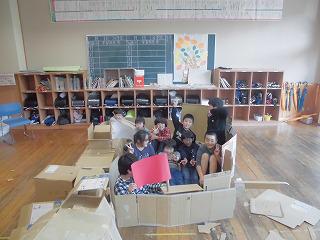 図工の学習で段ボール箱を使った造形遊びをしました。