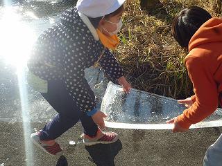普段行ってはいけないことになっている池へ行ってみると「うわ~!氷が張っている!」と大歓声。