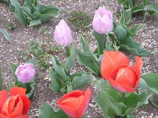 12月に、有志による奉仕作業で植えた花壇のチューリップも