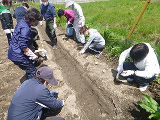 子供たちが楽しそうに種イモまきをしている例年の姿を思い出しながら作業をしました。