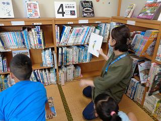 2年生は国語で「お気に入りの本をしょうかいしよう」の学習をしています。今まで読んだ本の中から、一番のお気に入りを友達に紹介する単元です。本の大好きな学年です。だれがどんな本を好きなのか、なんとなく知っています。そこで、図書支援員の先生に紹介することに。最後は、図書支援員の先生にもお気に入りの本を紹介していただきました。もうすぐ夏休み。お友達や先生が紹介してくれた本、是非読んでみてくださいね。