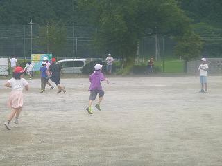 子供たちは、高学年のお兄さんやお姉さんから遊び方の説明を聞いた後、元気いっぱいに校庭に散らばり、梅雨空を吹き飛ばす勢いで駆け回っていました。