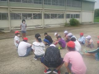 子供たちは、高学年のお兄さんやお姉さんから遊び方の説明を聞いた後、元気いっぱいに校庭に散らばり、梅雨空を吹き飛ばす勢いで駆け回っていました。